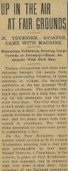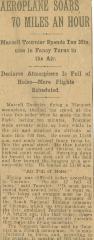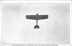Aeroplane soars 70 miles an hour, Marcel Tournier spends ten minutes in fancy turns in the air - L'avion s’élève dans les airs à 70 miles à l'heure, Marcel Tournier enchaine les virages spectaculaires pendant dix minutes.