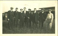 [Marcel Tournier parmi un groupe posant au pied d'un AVRO Type D] / . - s.d. - Photographie