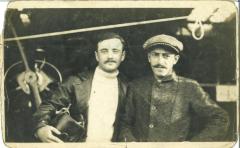 [Deux hommes aux commandes d'un avion non identifié] / . - s.d. - Photographie
