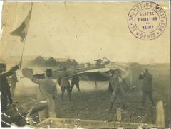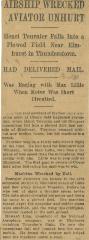 Airship wrecked, aviator unhurt - Marcel TOURNIER s'est écrasé dans un champ, l'avion est détruit, le pilote indemne.