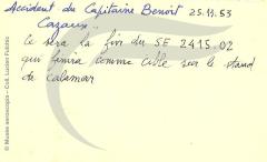 Verso Accident du capitaine Benoit sur SE 2415 Grognard